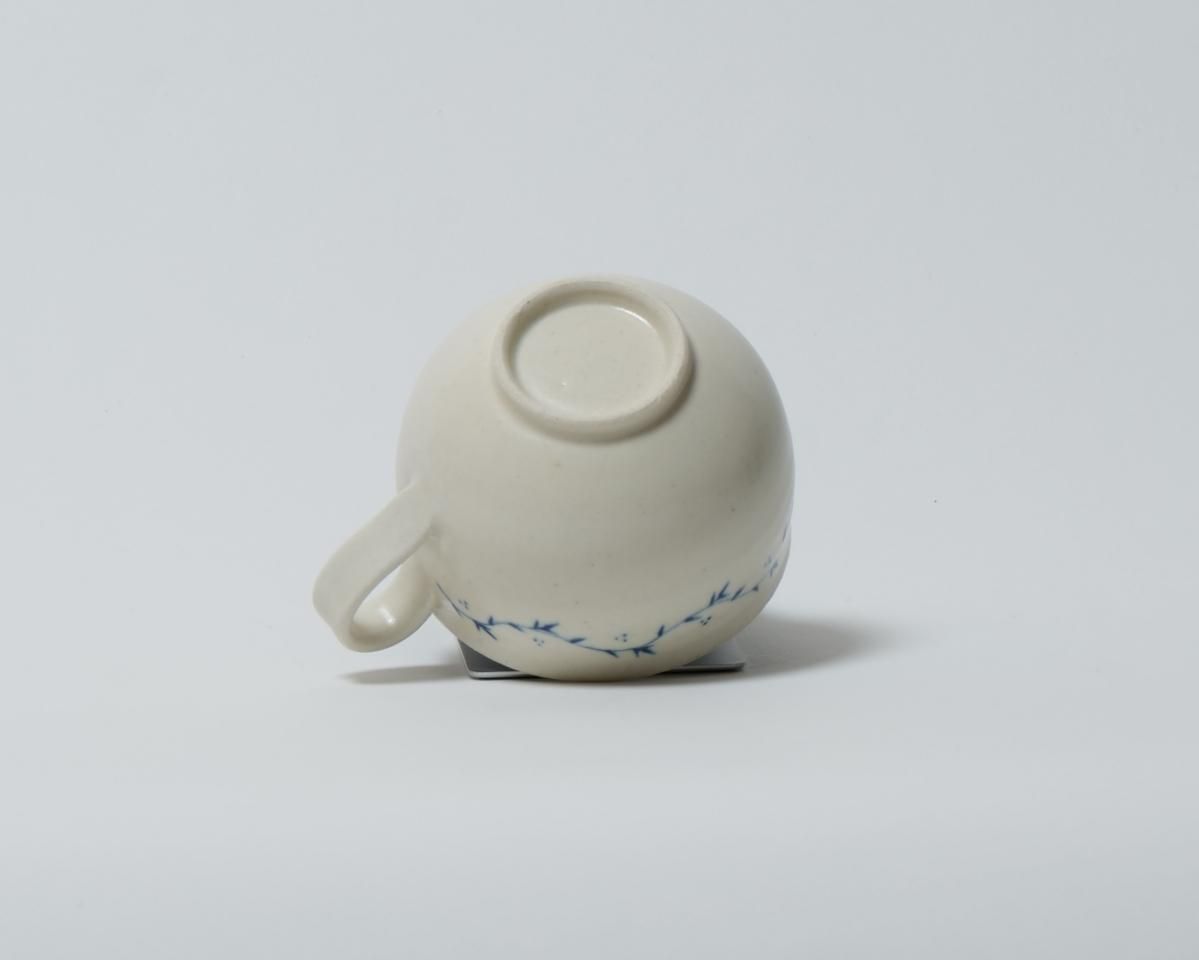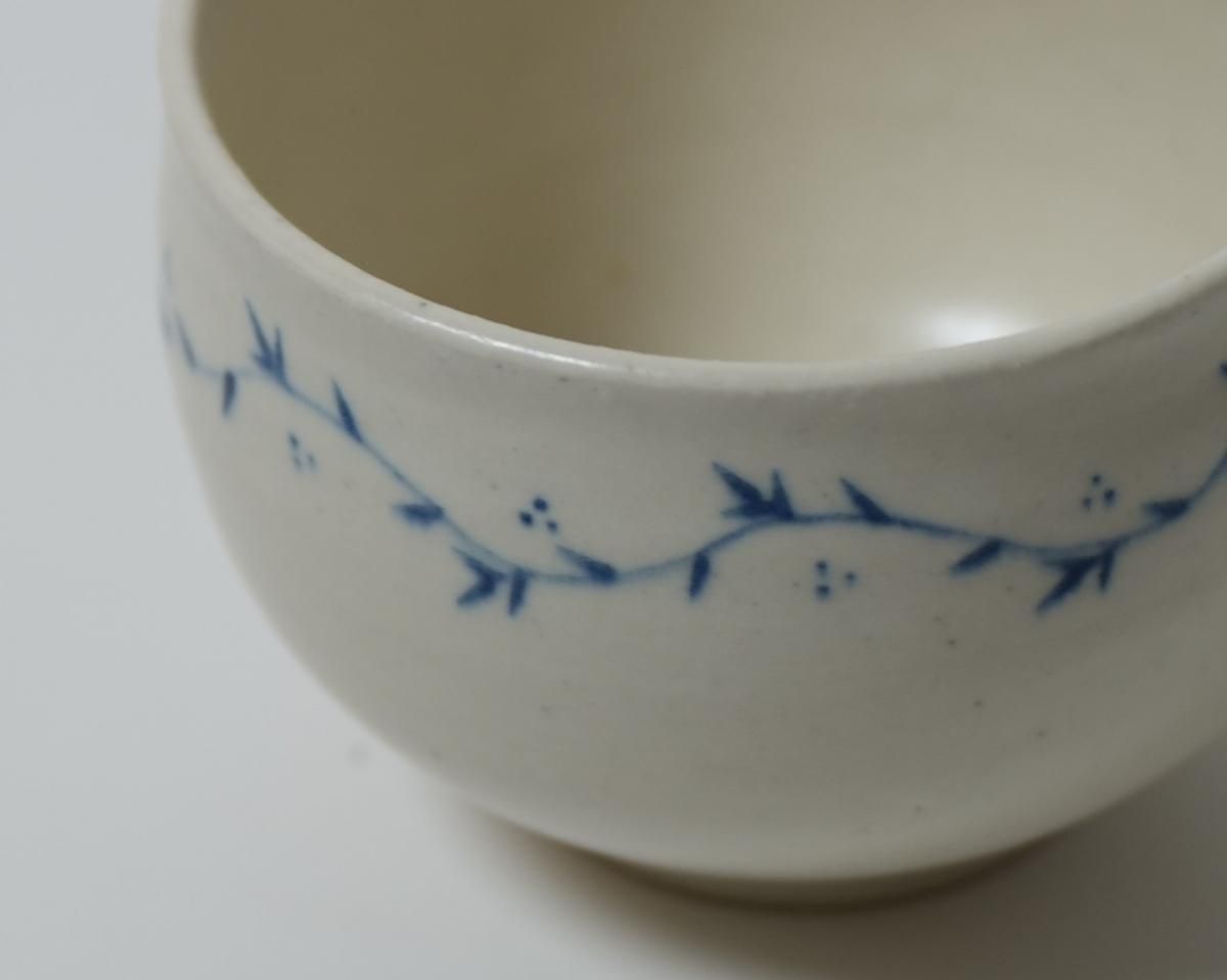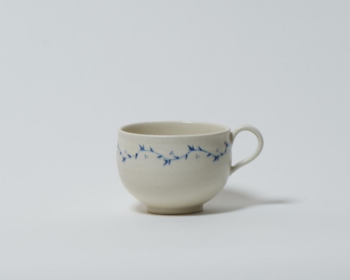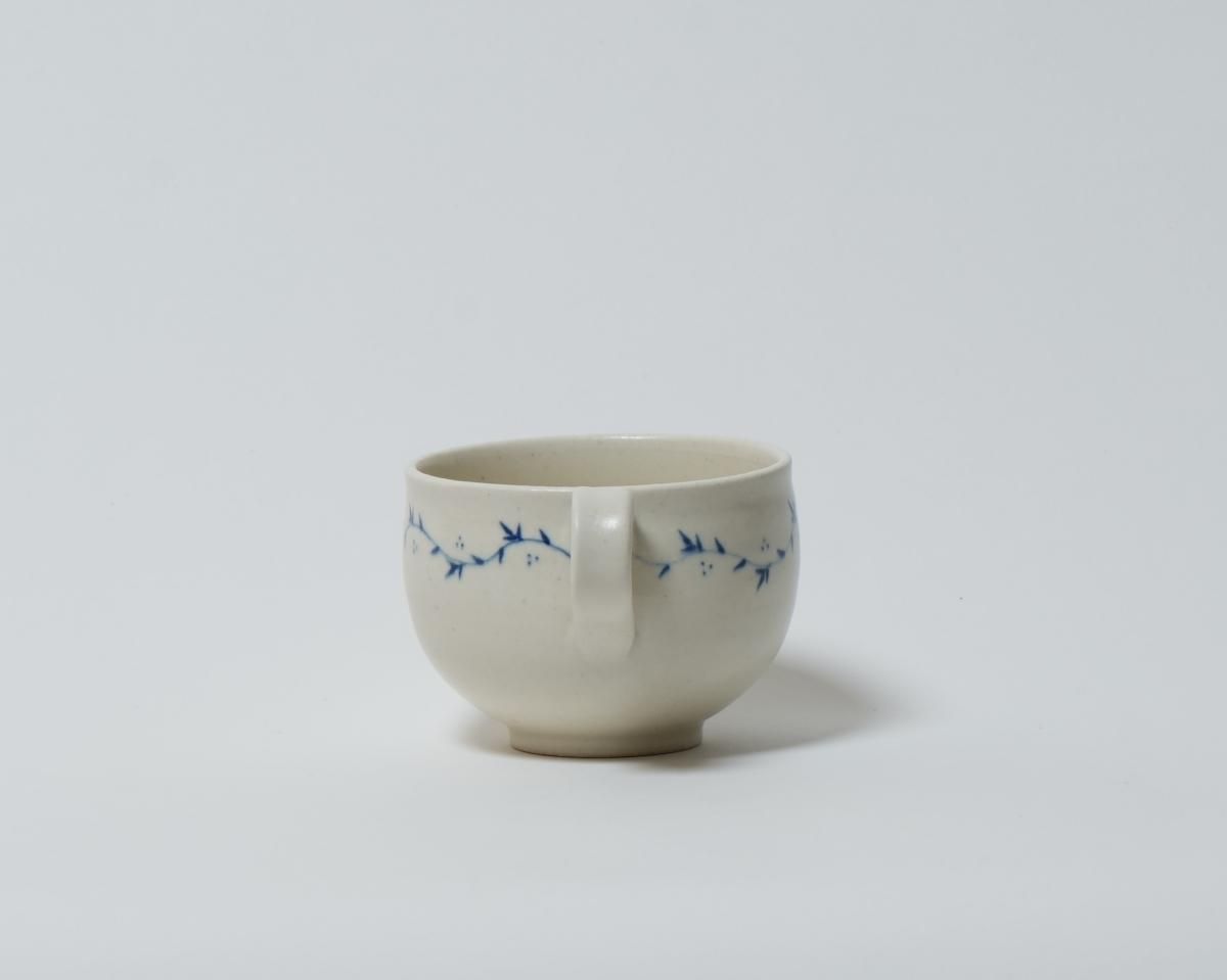 土のあたたかさ、使う人の生活にそっと寄り添ってくれる温かみのある作品です。青い植物の絵がさりげないマグカップです。