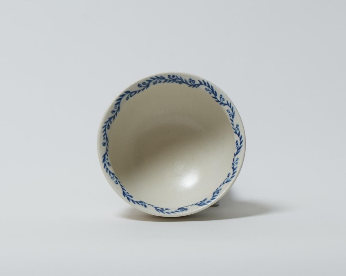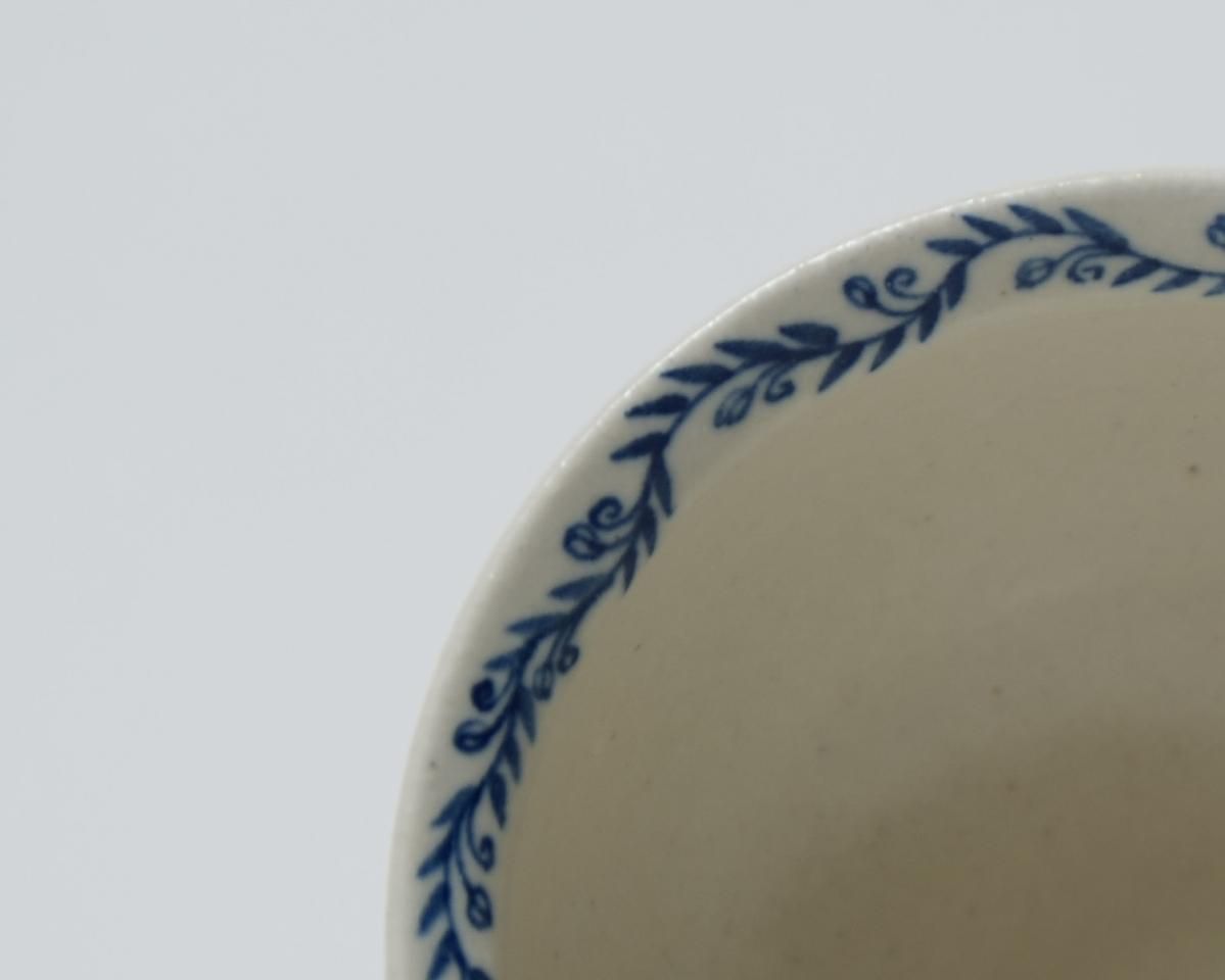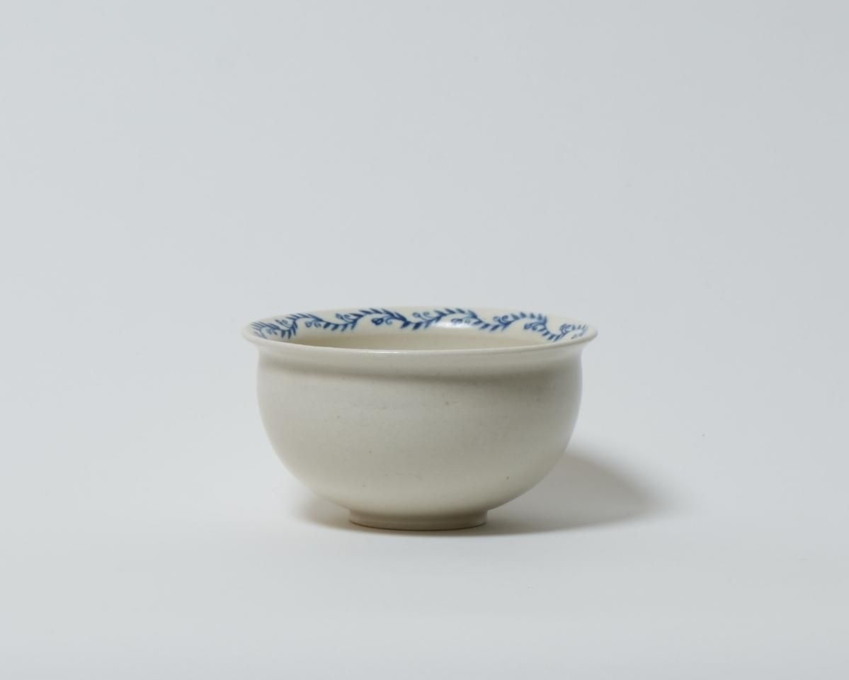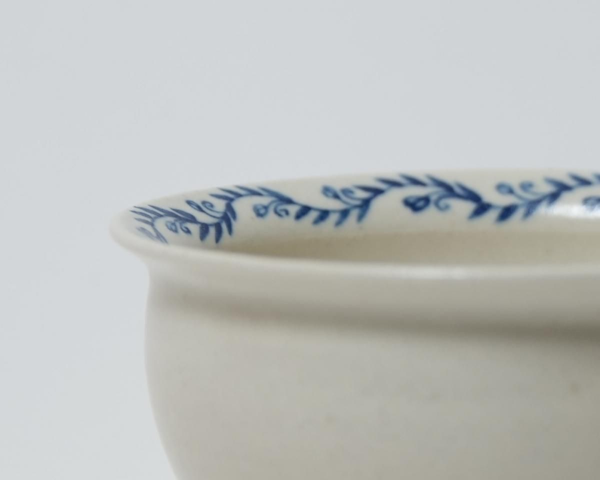 土のあたたかさ、使う人の生活にそっと寄り添ってくれる温かみのある作品です。青い植物の絵がさりげない器です。