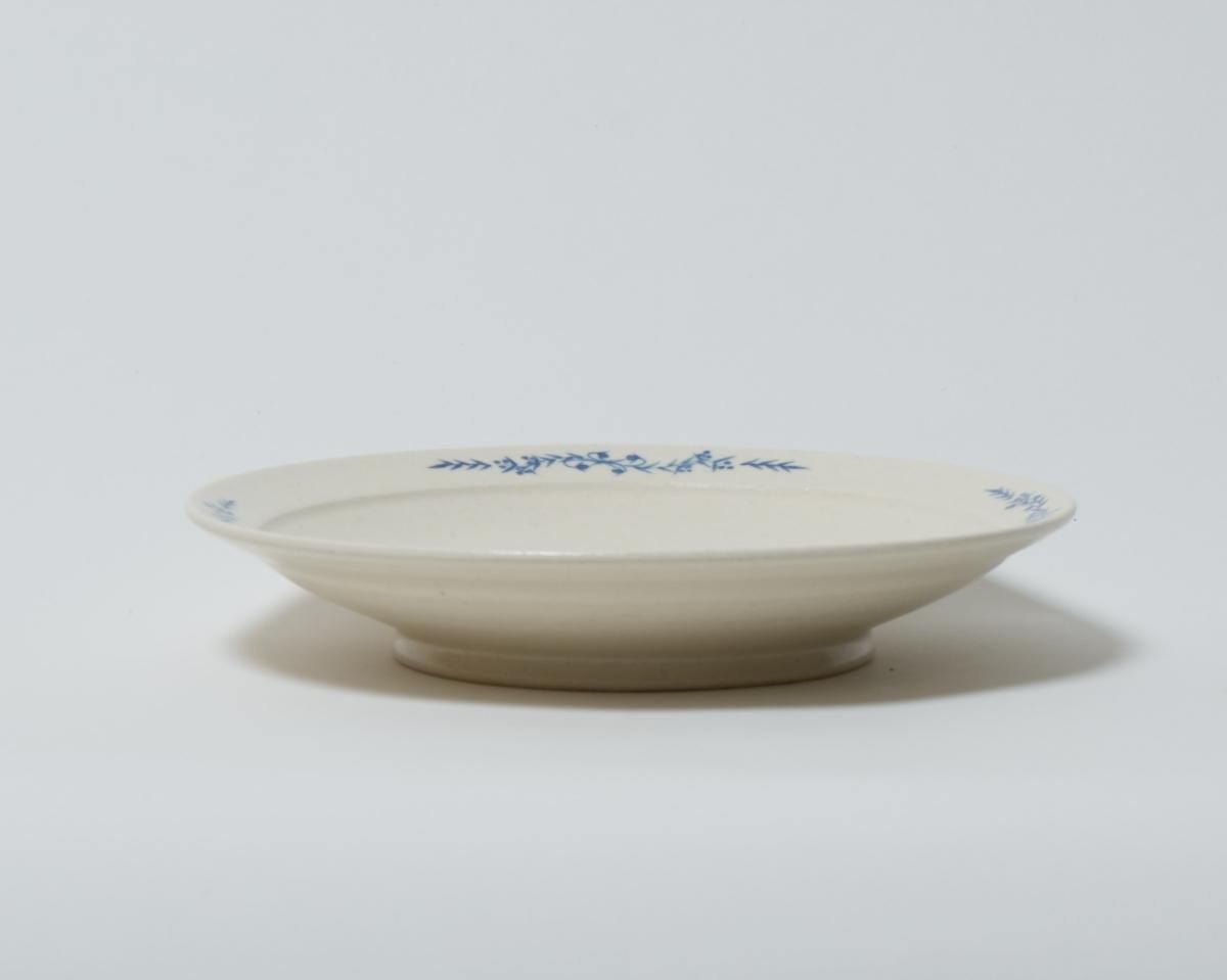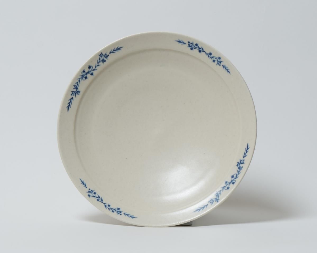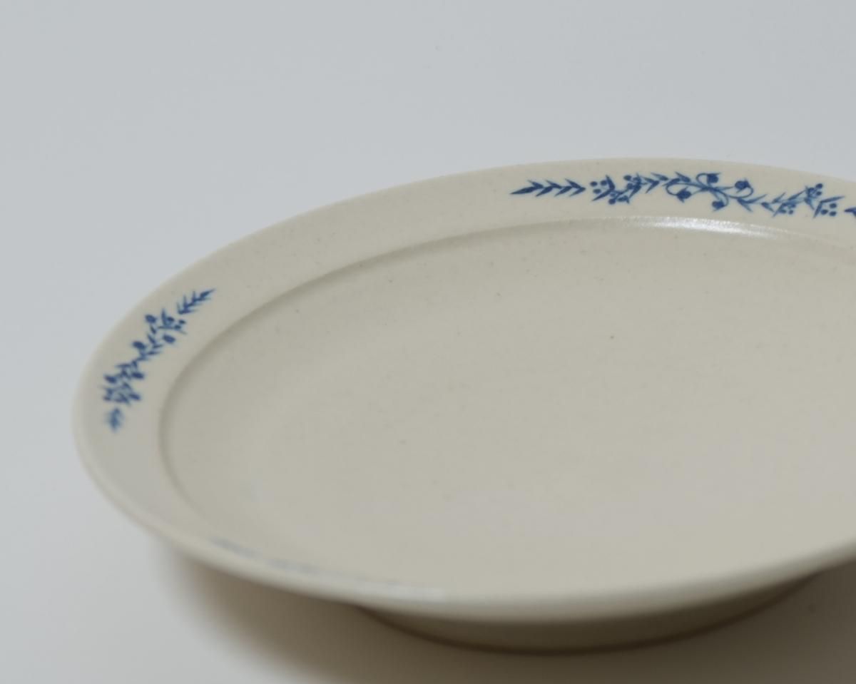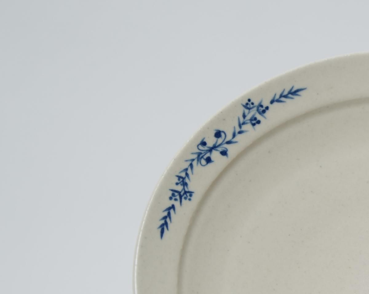 土のあたたかさ、使う人の生活にそっと寄り添ってくれる温かみのある作品です。青い植物の絵がきれいな、どんな料理にも合う器です。