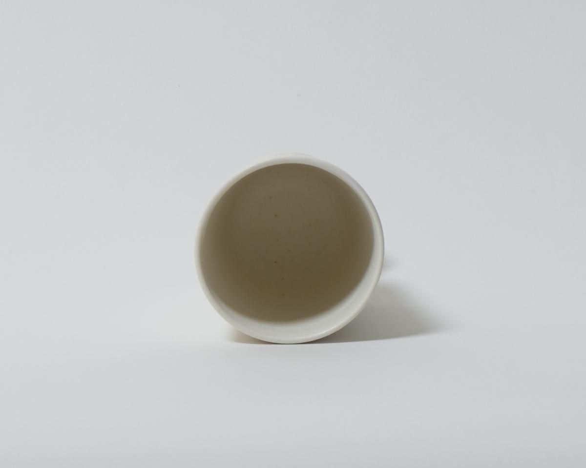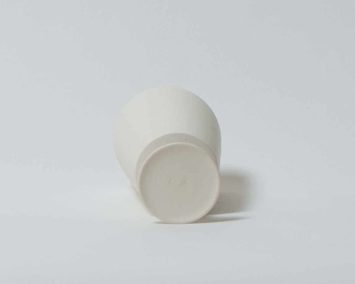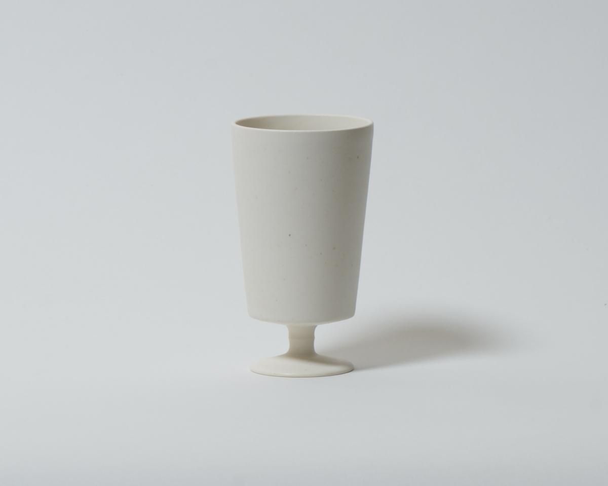 「白の世界」をテーマにした作品です。この作品はマット調のタイプで、凛とした中にも落ち着きや穏やかさが感じられます。脚、土台の部分も、なんとも言えないカワイらしさを醸し出しています。コップとしてだけではなく、パフェの器としてもお使いいただけます。